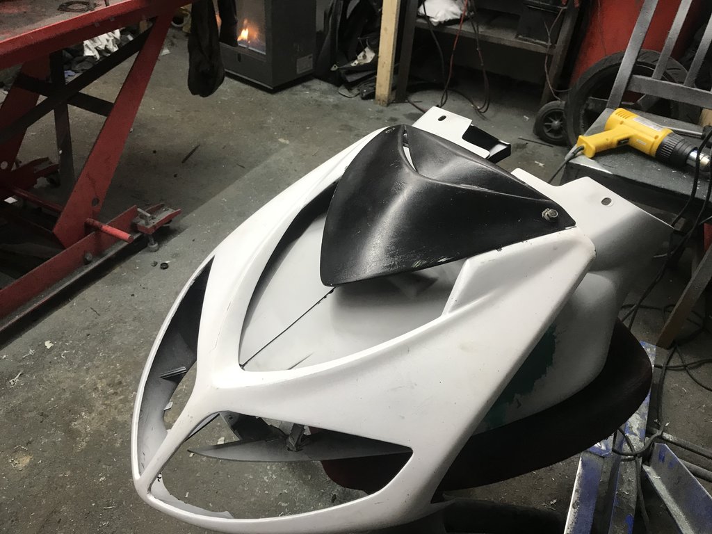 Zudem habe ich mich dazu entschieden den Spoiler komplett weg zu lassen und den Sozius mit GFK zu verkleiden.